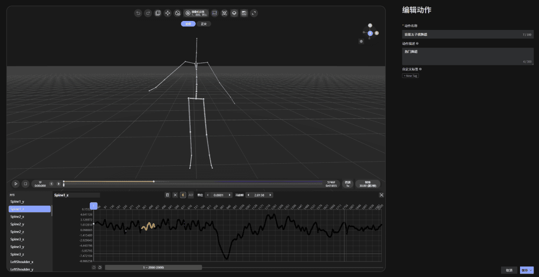 上传一段MP4舞蹈视频,AI自动提取骨骼数据,无需动捕设备。