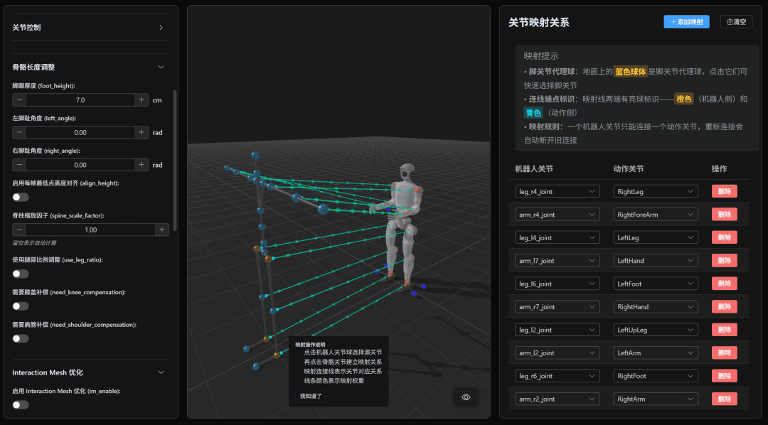 基于桥介数物研发的成熟重定向算法,无需关注关节映射,全程自动完成。